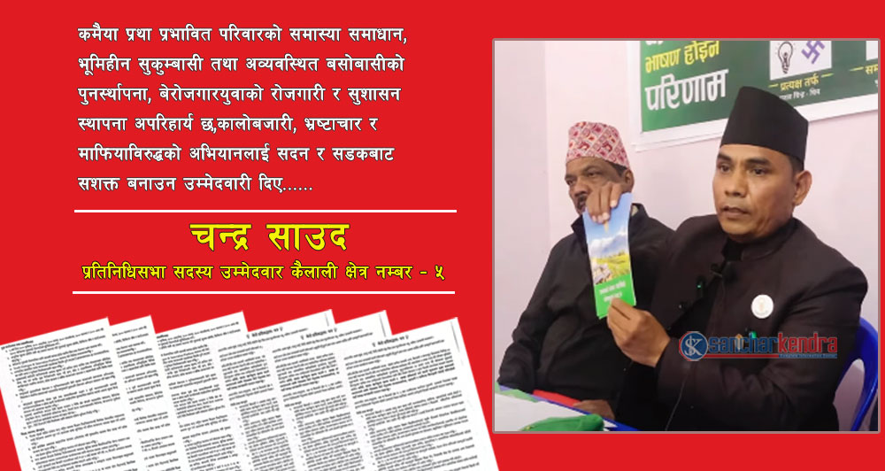 उज्यालो नेपाल पार्टीबाट कैलाली–५ का उम्मेद्वार चन्द्र साउदले सार्वजनिक गरे आफ्नो प्रतिबद्धता पत्र
