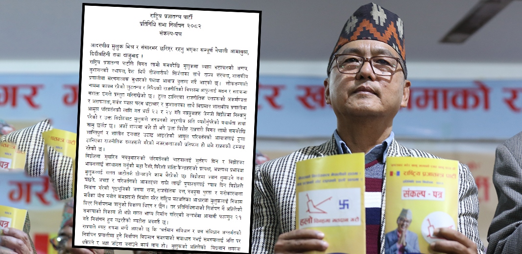 आफ्नै पूर्वअडानमा परिमार्जन गर्दै राप्रपाले सार्वजनिक गर्यो आफ्नो घोषणापत्र (पूर्णपाठसहित)