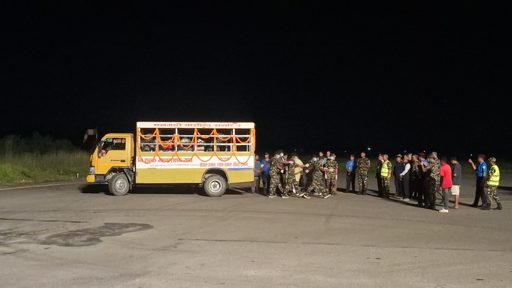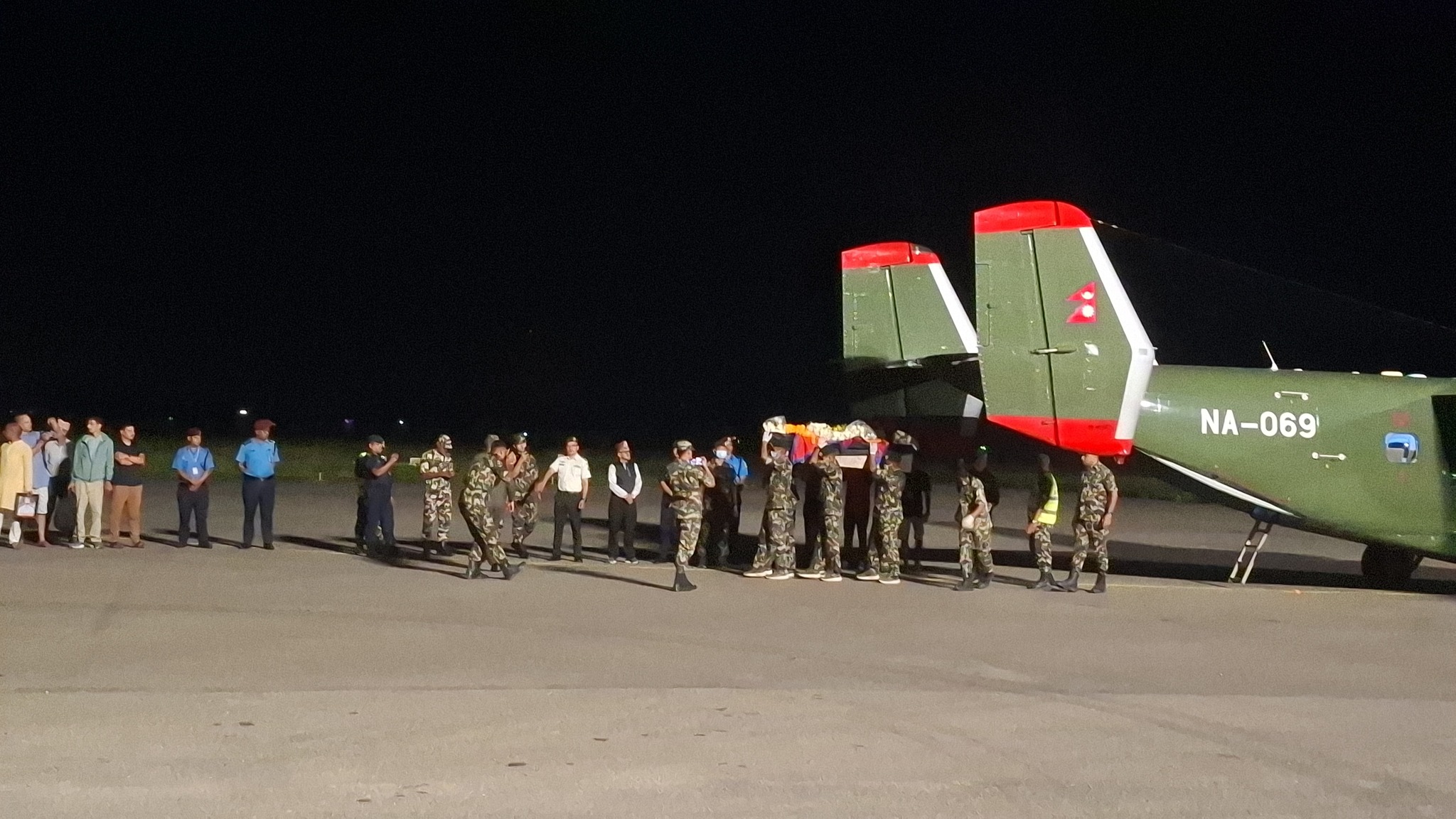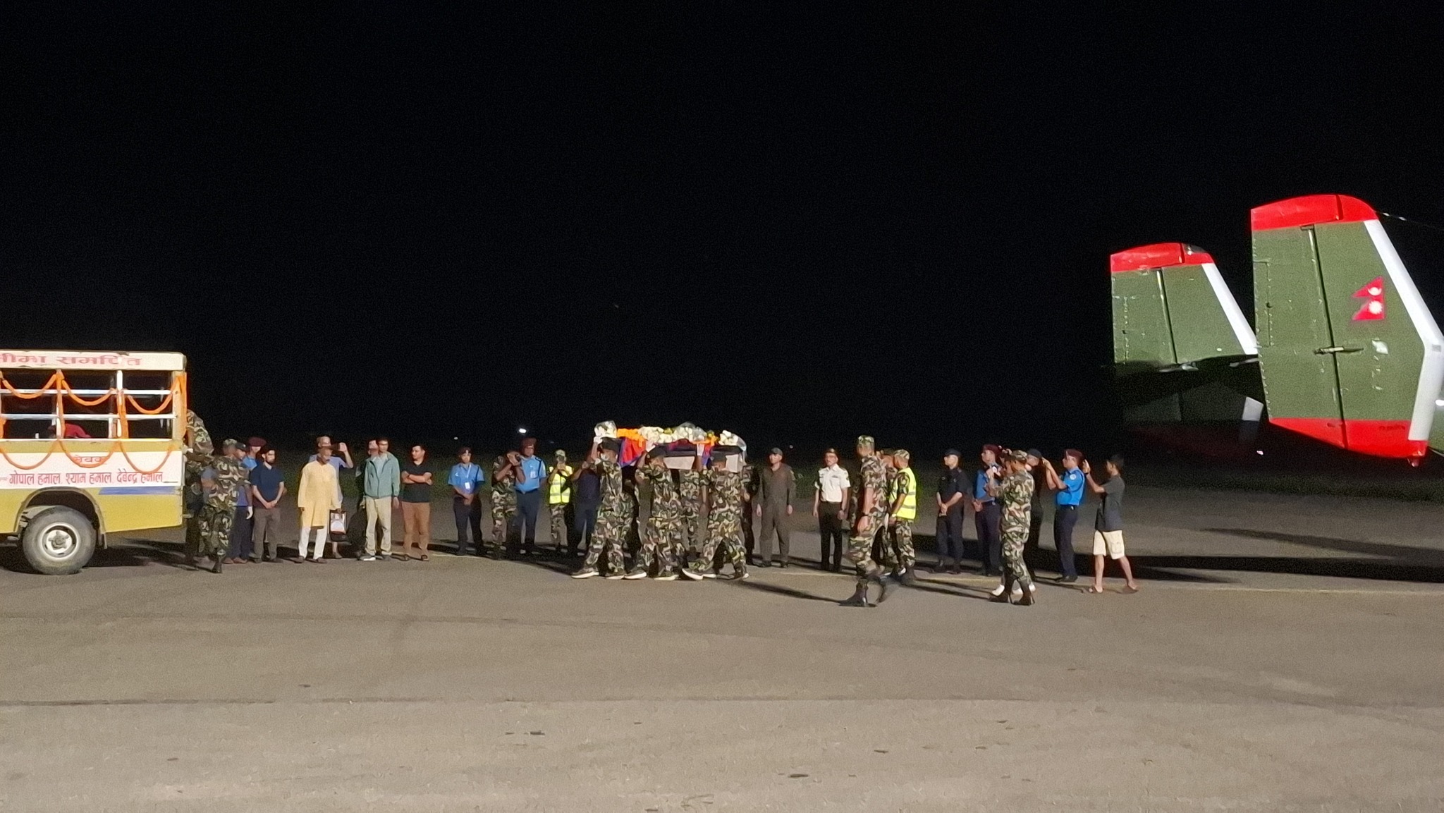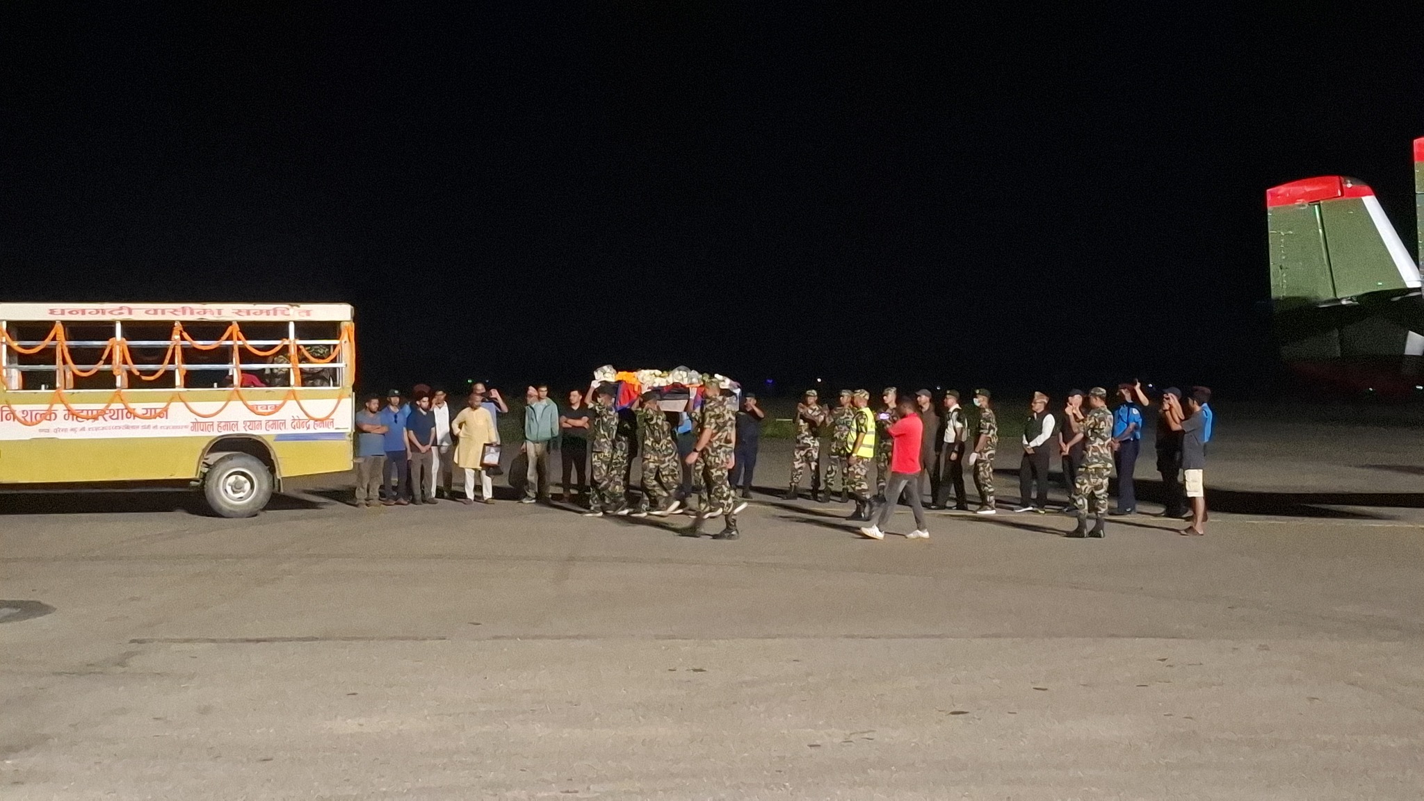 काठमाडौँ । इजरायलमा मारिएका कञ्चनपुरका विपिन जोशीको पार्थिव शरीर सोमबार साँझ उनको परिवारलाई बुझाइएको छ। विपिनको शव धनगढी विमानस्थलमा नेपाली सेनाको टोलीले राजकीय सम्मानका साथ परिवारका सदस्यलाई हस्तान्तरण गरेको हो। शव दाजु किशोर जोशीसहितका आफन्तले बुझेका हुन्। परिवारका अनुसार विपिनको अन्त्येष्टि महाकाली घाटमा गरिनेछ।