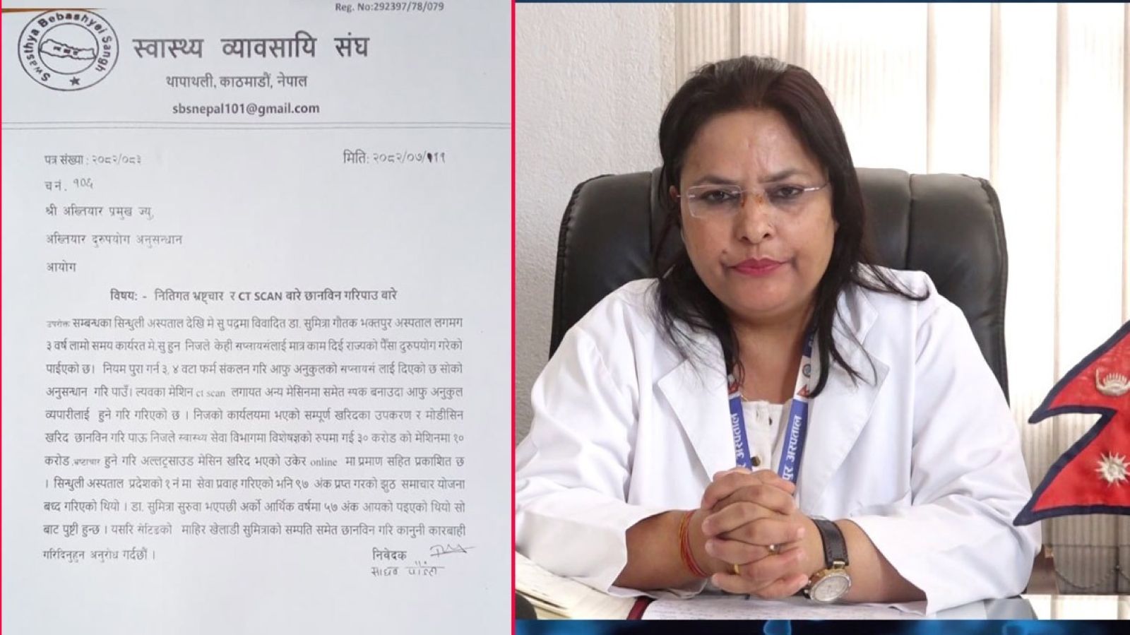 काठमाडौँ । बागमती प्रदेश स्वास्थ्य मन्त्रालयकी सचिव डा. सुमित्रा गौतमविरुद्ध अख्तियार दुरुपयोग अनुसन्धान आयोगमा उजुरी परेको छ ।