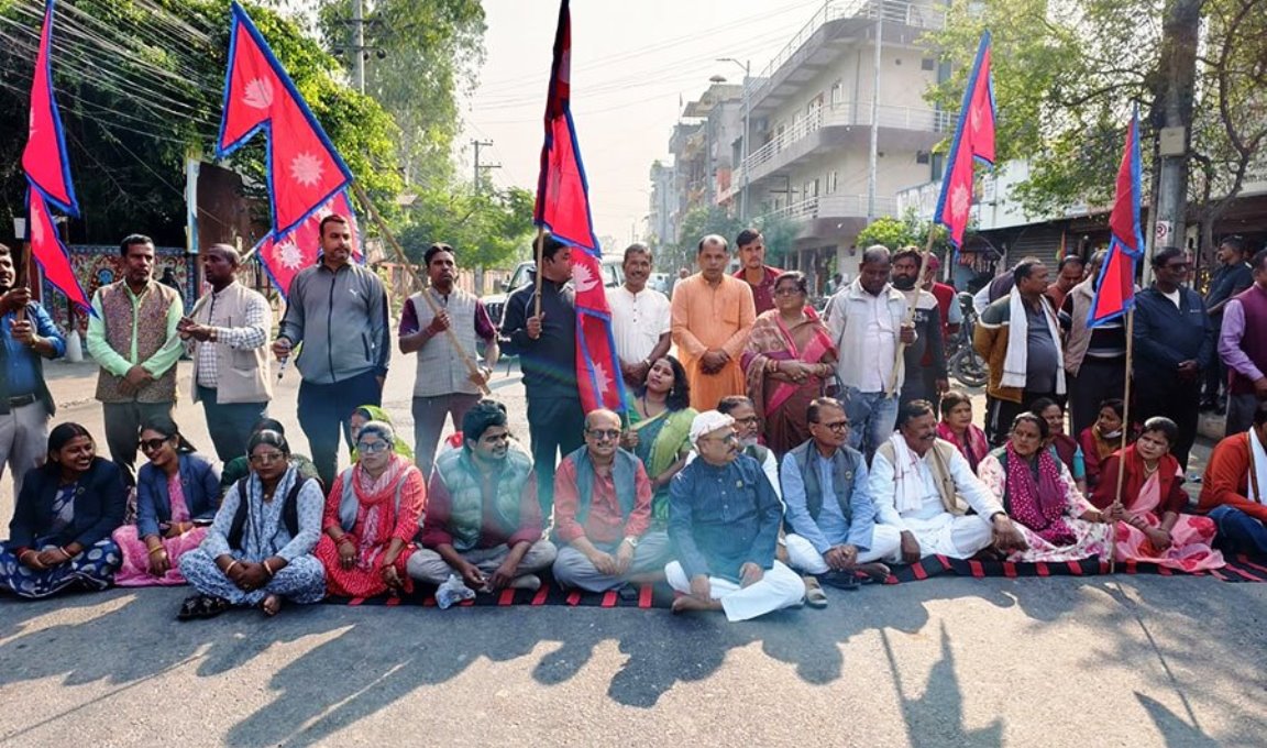 ७ दलीय गठबन्धनका सांसदले दिए सडकमा धर्ना
