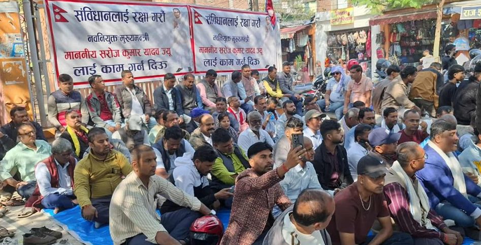 यता सात दलीय गठबन्धनले सरकार गठन अवैधानिक रहेको भन्दै बदरको माग गर्दै मधेस भवन अगाडि नियमित धर्ना दिँदै आएका छन् ।मधेश भवन अगाडि आज पनि सात दलीय गठबन्धनका प्रदेश सांसदहरु धर्ना बसिरहेका छन् ।