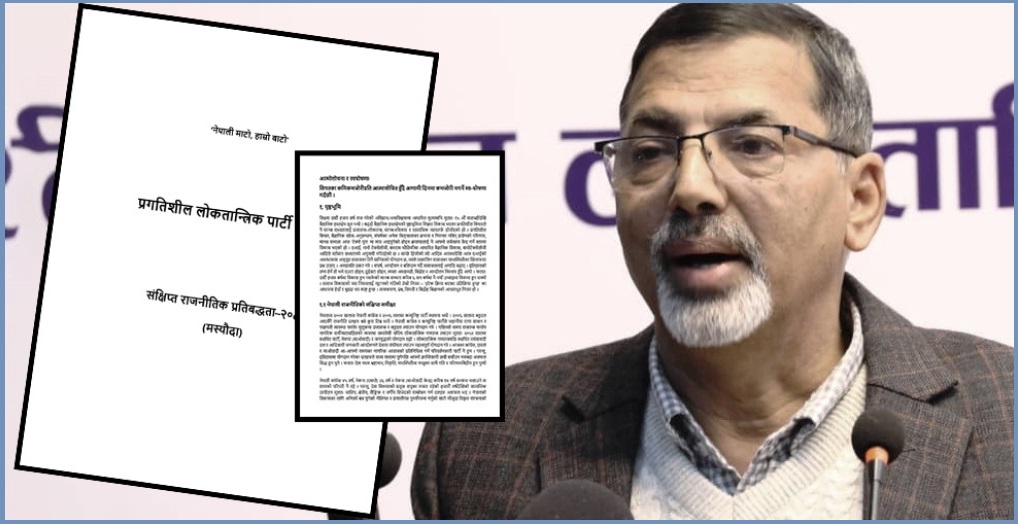 ‘नेपाली माटो हाम्रो बाटो’ नारा बोकेको पार्टीले सुरुमै आत्मालोचना र स्वघोषणा गरेको छ । ‘विगतका कमीकमजोरीप्रति आत्मालोचित हुँदै आगामी दिनमा कमजोरी नगर्ने स्वघोषणा गर्दछौँ’, प्रतिबद्धतामा भनिएको ।