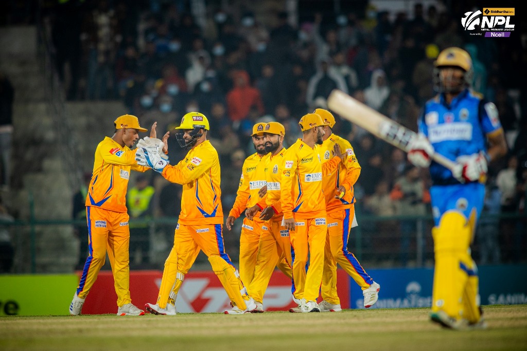 १४० रनको लक्ष्य पछ्याएको कर्णाली ५ बल बाँकी छँदै ९४ रनमा अलआउट भयो । कर्णालीका लागि पवन र्सारफले सर्वाधिक २७ र मार्क वाटले १७ रन बनाए । २९ रनमा ४ विकेट गुमाएको कर्णालीका लागि कप्तान सोमपाल कामी र पवन सर्राफले ३४ रनको साझेदारी गर्दै सम्हाल्ने प्रयास गरेका थिए ।