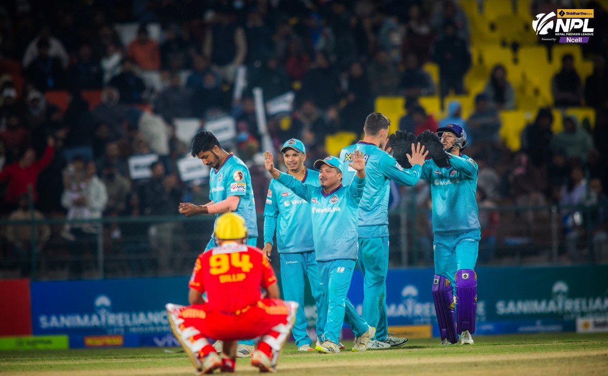 मंगलबार कीर्तिपुरस्थित टीयू अन्तर्राष्ट्रिय क्रिकेट स्टेडियममा भएको खेलमा काठमान्डुले लुम्बिनी लायन्सलाई २२ रनले पराजित गरेको हो ।
