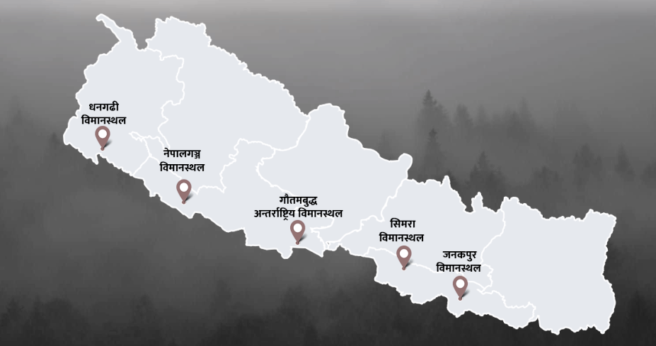 त्रिभुवन अन्तर्राष्ट्रिय विमानस्थल नागरिक उड्डयन कार्यालयका अनुसार जनकपुर, सिमरा, भैरहवा, नेपालगन्ज र धनगढी विमानस्थलमा आज उडान नै हुन सकेको छैन ।