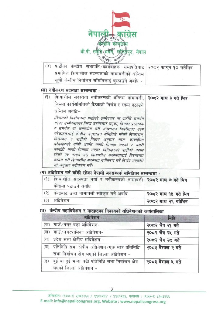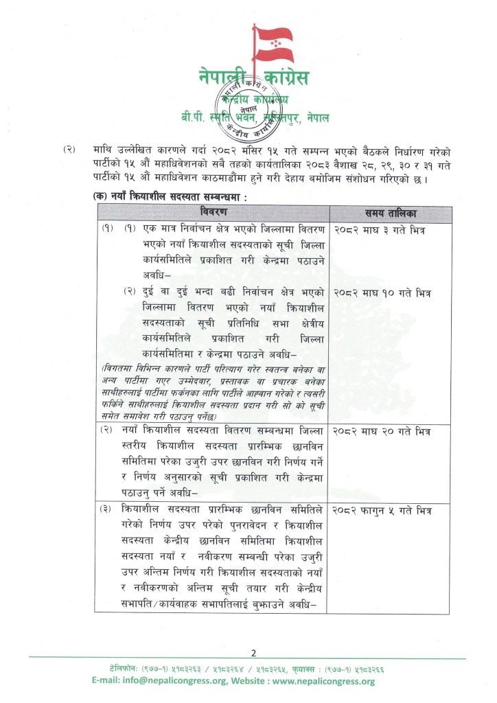 पुस १८ गतेको कार्यसम्पादन समितिको निर्णयअनुसार भनेर १९ गतेको मिति भएको परिपत्र कांग्रेसले आज आफ्नो फेसबुक पेजमार्फत सार्वजनिक गरेको हो ।