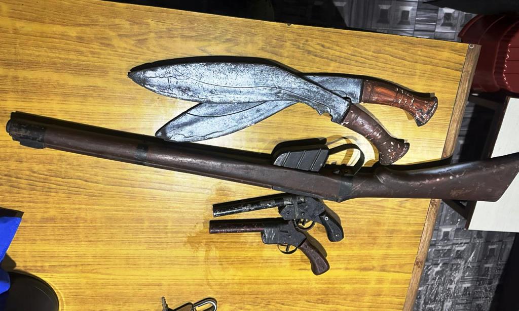 उनीहरूबाट ३०३ राइफल जस्तो देखिने एउटा डमी, कटुवा पेस्तोल जस्तो देखिने दुई वटा डमी हतियार, खुकुरी जस्तो फलामले बनेको वटा हतियार र एउटा मोटरसाइकल बरामद गरेको छ।