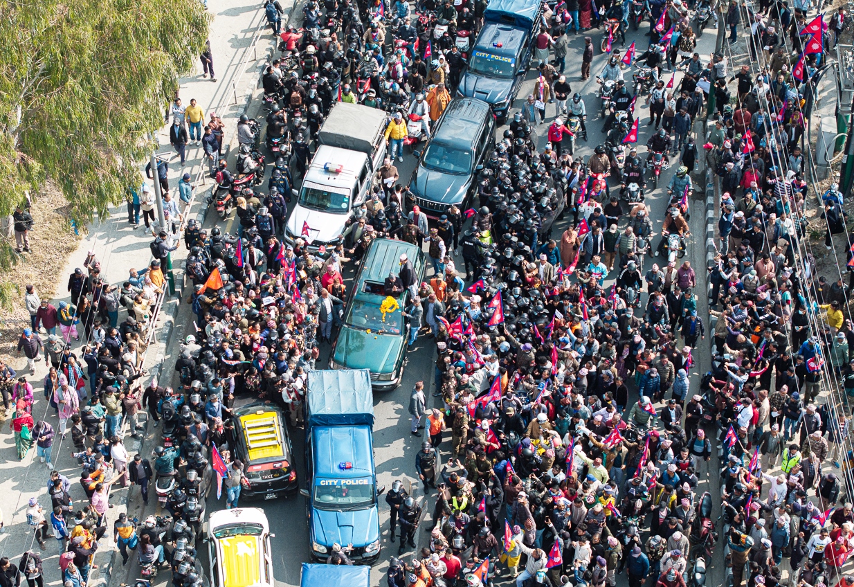 समर्थकहरूले पूर्वराजा ज्ञानेन्द्र शाहलाई नाराजुलुस गर्दै पुर्याए निर्मल निवास