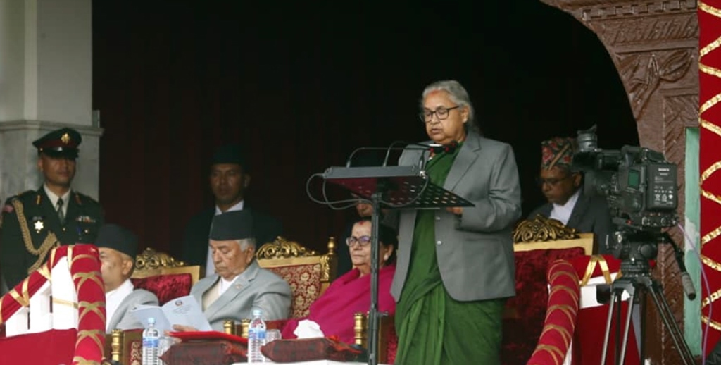 नेपालको निर्वाचन इतिहास स्मरण गर्दै वि.सं. २०१५ साल फागुन ७ गतेदेखि सुरु भएको पहिलो प्रजातान्त्रिक निर्वाचनको उल्लेख गर्दै उनले तोकिएकै मितिमा विश्वसनीय वातावरणमा निर्वाचन सम्पन्न हुने सुनिश्चितता दिइन्। लोकतन्त्रलाई मजबुत बनाउने जिम्मेवारी सरकार, राजनीतिक दल र नागरिक सबैको साझा दायित्व भएको उनको भनाइ थियो।