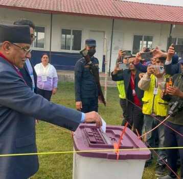 मतदानका लागि मतदाता बिहान ६ बजेदेखि नै मतदाता लाइनमा बसेका छन् । उनले मतदान पूर्व ब्यालेट बक्स ढोगेर मत खसालेका छन् ।