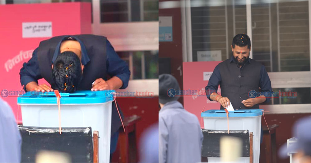 काठमाडौं । राष्ट्रिय स्वतन्त्र पार्टीका सभापति रवि लामिछाने मतदान गरेका छन् । काठमाडौँको चुच्चेपाटीस्थित उपत्यका खानेपानी लिमिटेडको महाँकाल मतदान केन्द्रमा पुगेर रविले बिहान सुरुमै ब्यालेट बक्समा ढोगेर मतदान गरेका हुन् ।