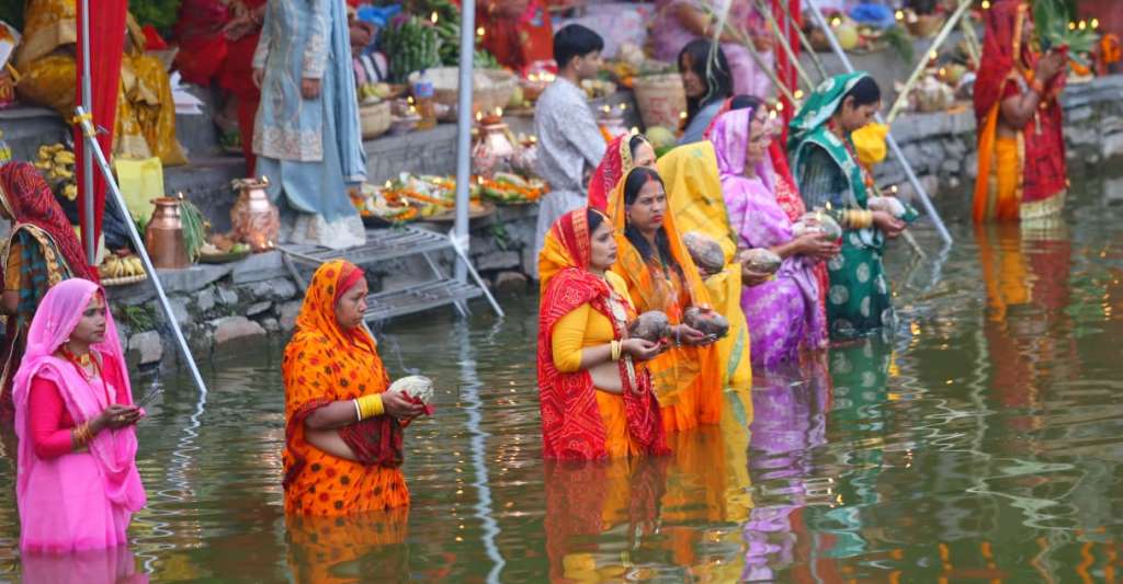 मिथिलामा आज अस्ताउँदो सूर्यलाई अर्घ्य दिँदै चैती छठ पर्व मनाइँदै
