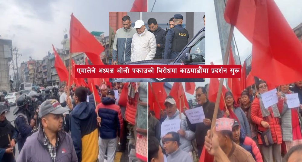 एमालेले अध्यक्ष ओली पक्राउको विरोधमा काठमाडौंमा प्रदर्शन सुरू