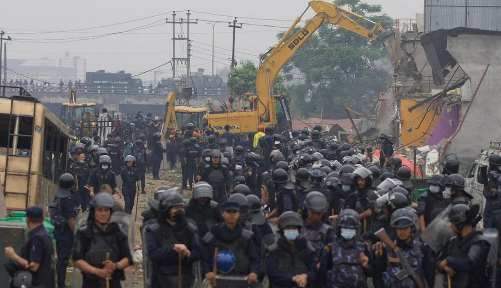 आज बिहानैदेखि एक हजार ३०० नेपाल प्रहरी र ६०० सशस्त्र प्रहरी परिचालन गरेर संरचना भत्काउन थालिएको हो ।